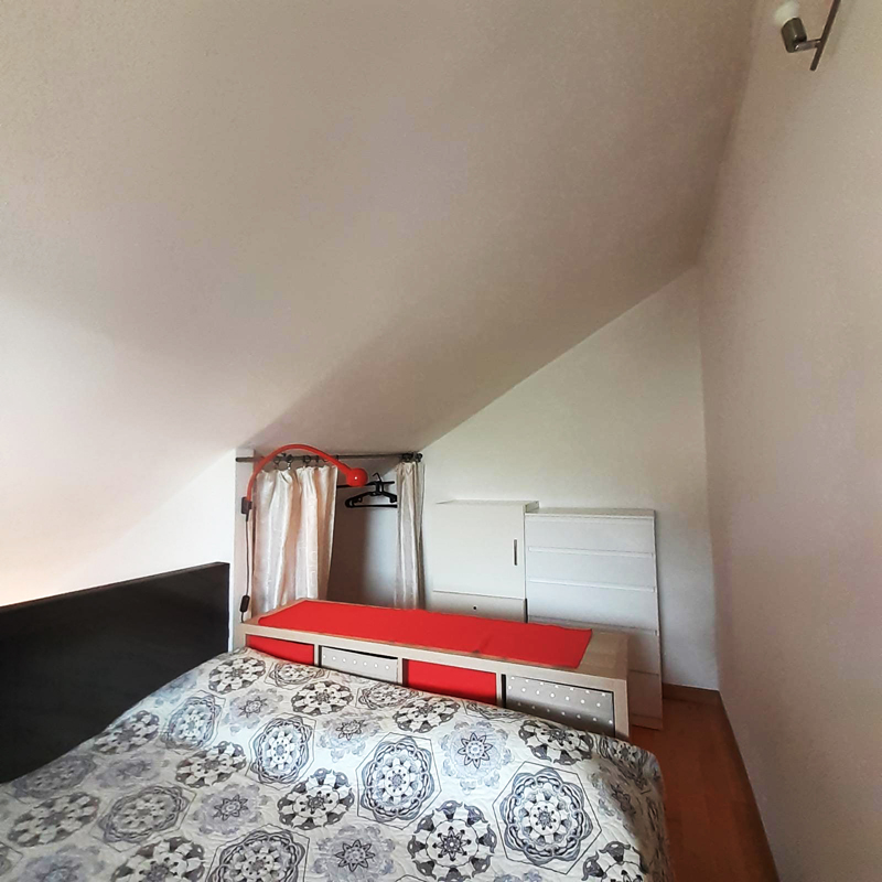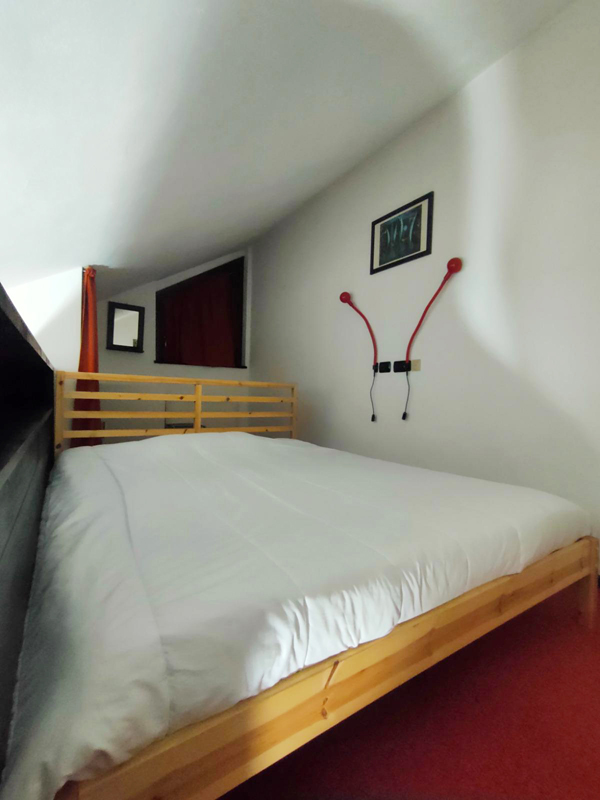 28m² - pokój dzienny z aneksem kuchennym i rozkładaną kanapą dla 2 osób, otwarta podniesiona podłoga w pokoju dziennym z łóżkiem małżeńskim (skośny sufit), łazienka, taras z 50%; odpowiedni dla 2 dorosłych i 2 dzieci