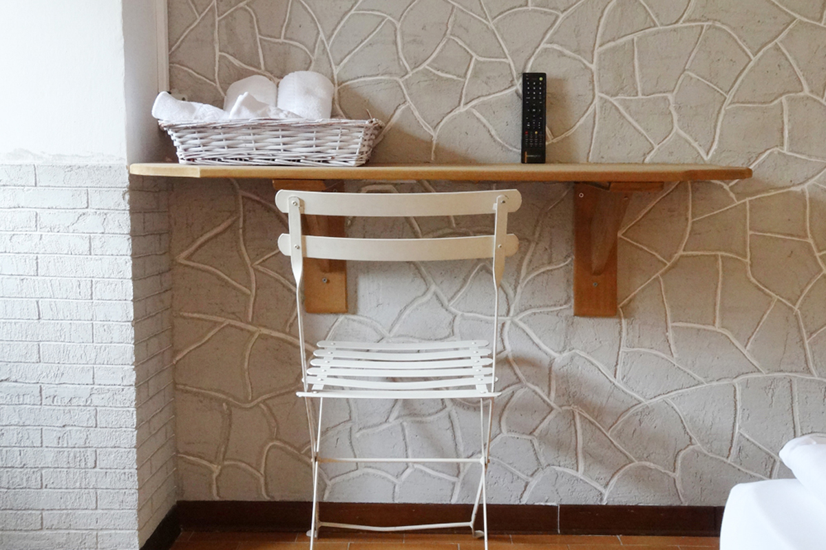 pokój z łóżkiem małżeńskim lub 2 łóżkami pojedynczymi, 3. i 4. łóżkiem w formie łóżka stałego lub łóżka piętrowego, łazienka z prysznicem lub wanną