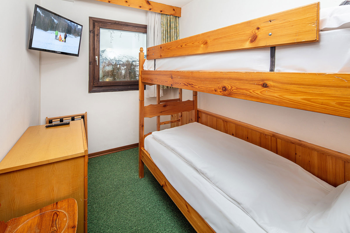 pokój z łóżkiem małżeńskim i ewentualnie 1 łóżkiem pojedynczym, pokój z 2 łóżkami pojedynczymi lub łóżkiem piętrowym i ewentualnie 1 dodatkowym łóżkiem pojedynczym, łazienka z prysznicem, rzadko balkon; apartamenty po całkowitym remoncie