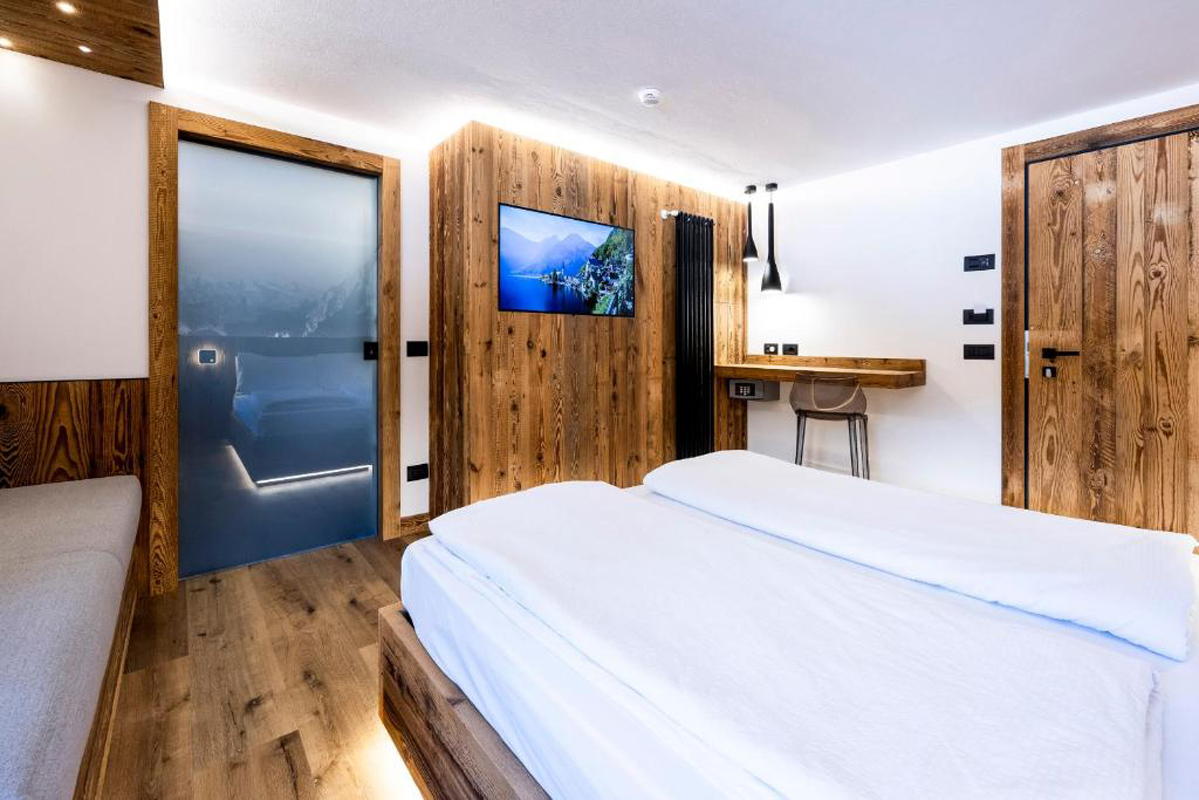 12 m² – pokój z łóżkiem małżeńskim, widokiem na jezioro, sauną, łazienką z prysznicem; pokój po generalnym remoncie