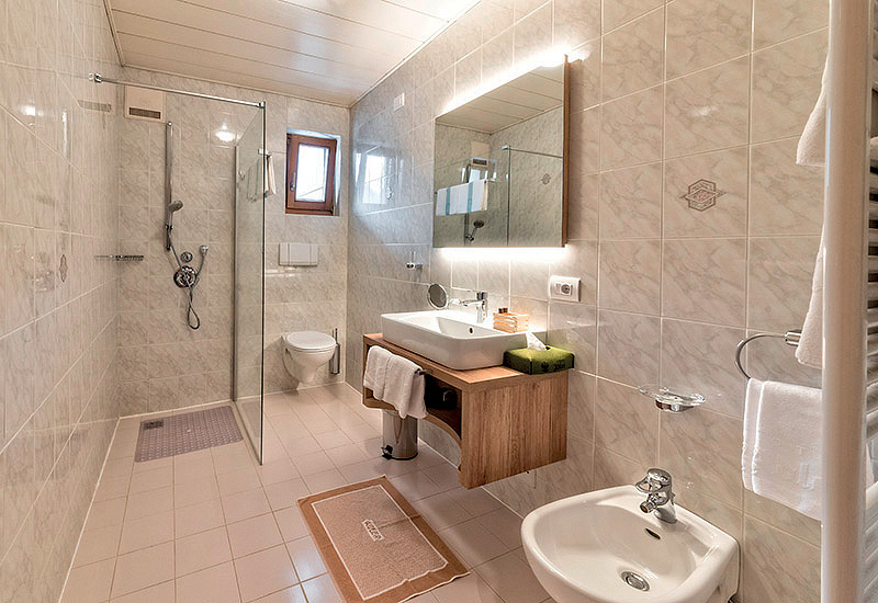 35 m² - pokój z łożem małżeńskim i ewentualnie rozkładaną kanapą dla 1 lub 2 osób, łazienka, balkon z widokiem na Dolomity