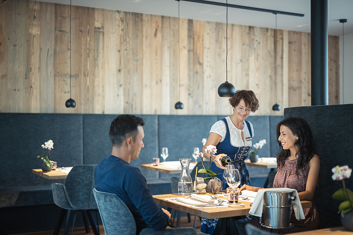 serwowane menu do wyboru z 2 ciepłych przystawek i z 2 dań głównych z dodatkami, serwowany deser lub sery, bufet sałatkowy, napoje za dopłatą