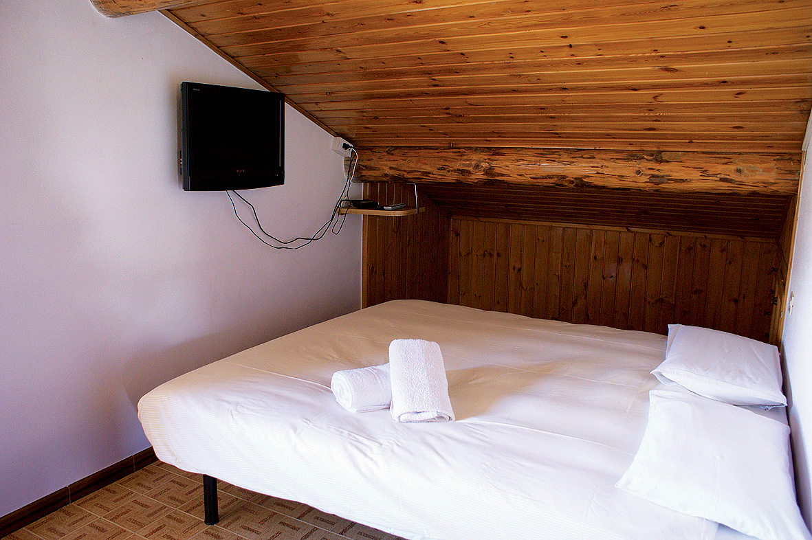 90 m² - 2 sypialnie z łóżkiem małżeńskim, 1 sypialnia z 3 pojedynczymi łóżkami, pokój dzienny z aneksem kuchennym, łazienka.