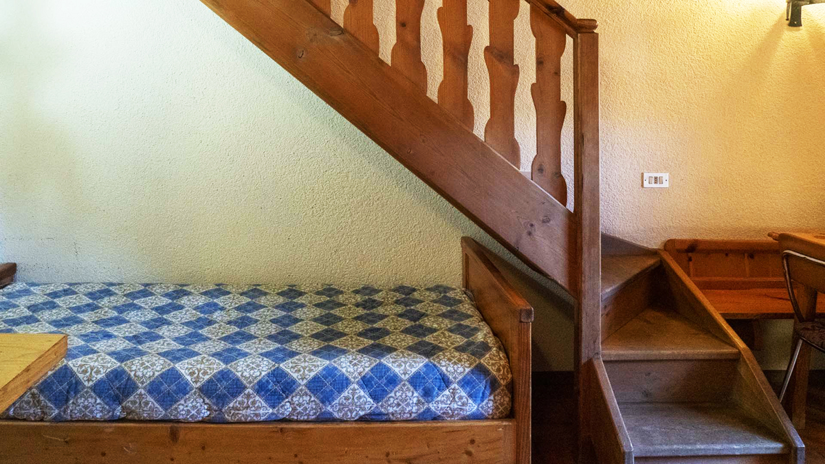 trilo 6 - 1 sypialnia z łóżkiem małżeńskim lub 2 pojedynczymi łóżkami, 1 sypialnia z 2 pojedynczymi łóżkami, pokój dzienny z aneksem kuchennym i rozkładaną kanapą dla 2 osób, łazienka z prysznicem, balkon; apartament znajduje się na poddaszu