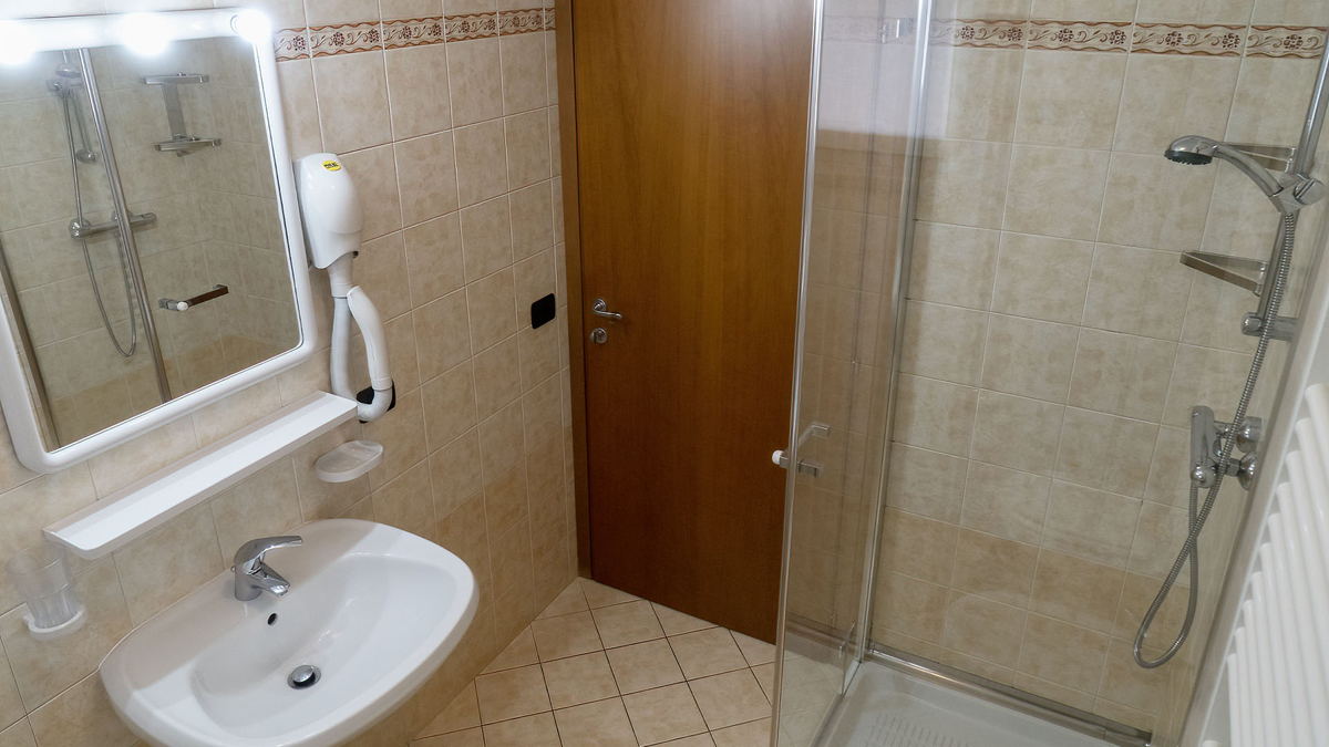 1 sypialnia z łóżkiem małżeńskim lub 2 pojedynczymi łóżkami i balkonem, 1 sypialnia z 2 pojedynczymi łóżkami, pokój dzienny z aneksem kuchennym, 2 łazienki z prysznicem; apartament znajduje się na 3 piętrze (poddasze)