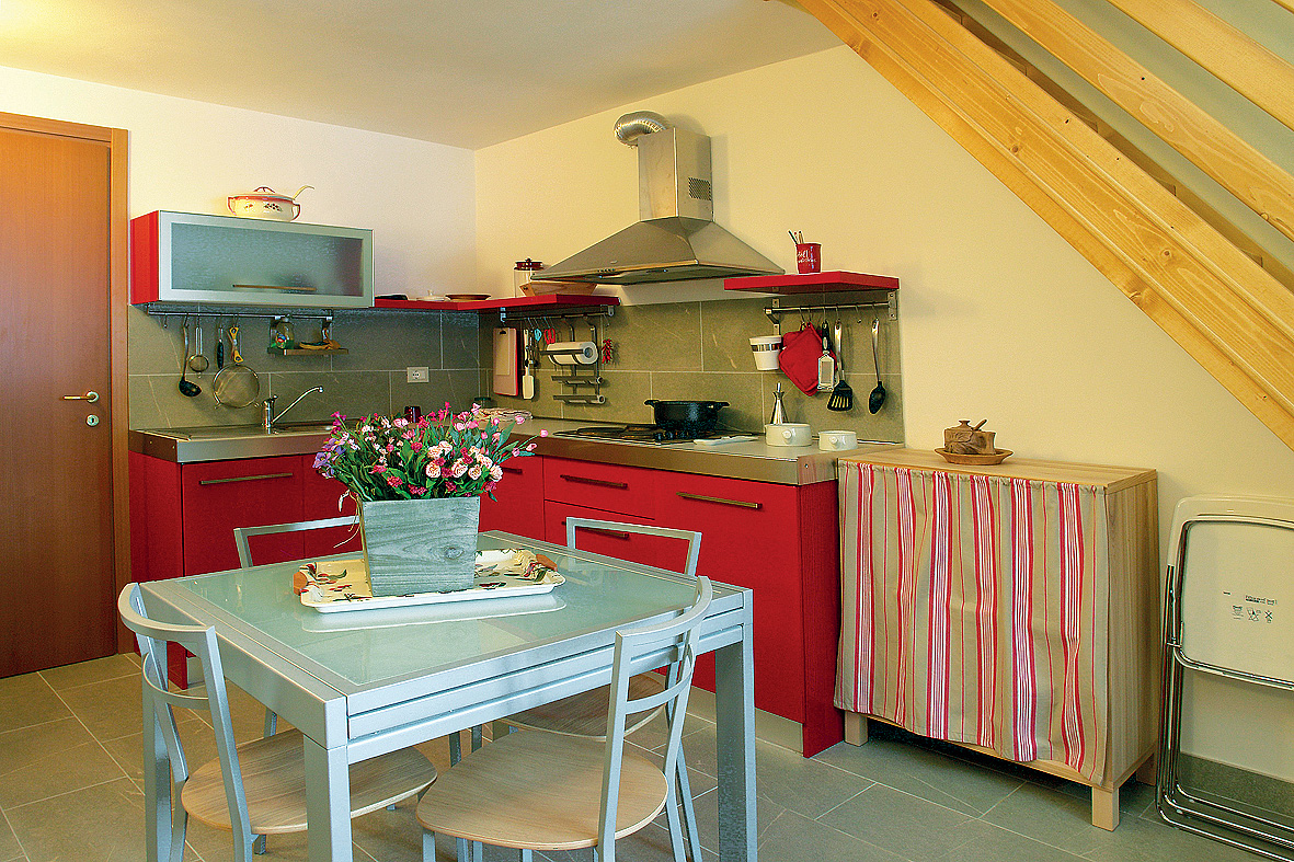 18 m² - pokój dzienny z aneksem kuchennym i rozkładaną kanapą dla 2 osób, łazienka, balkon lub wejście od ogrodu