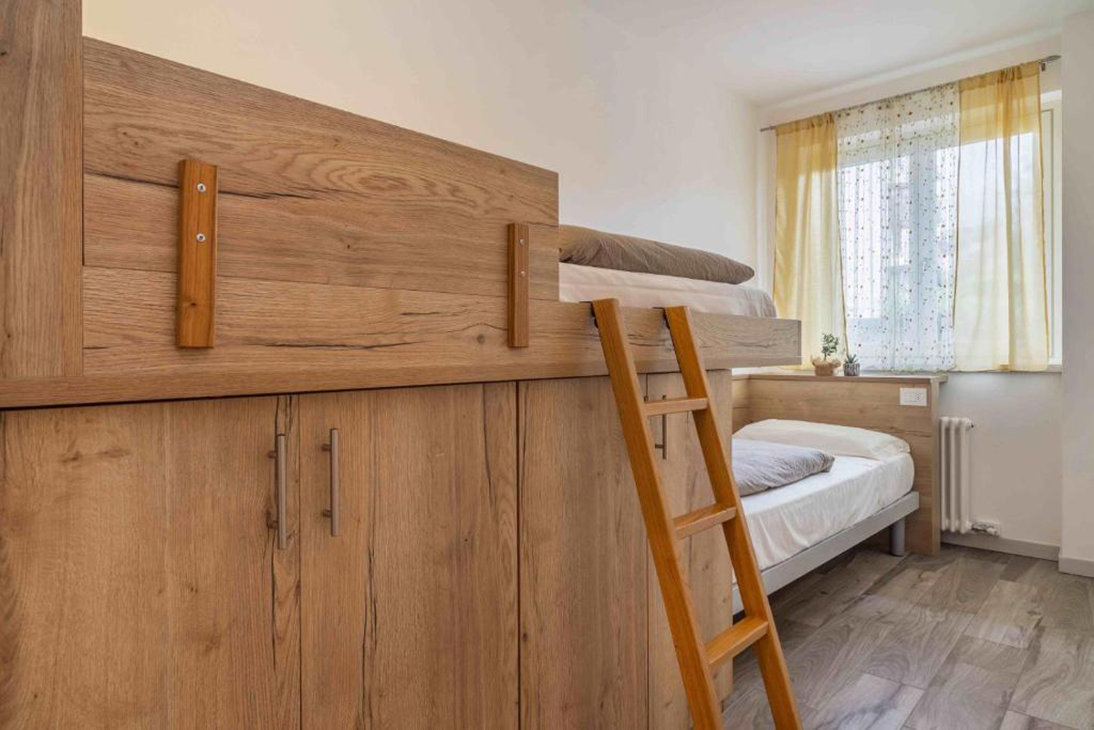 trilo 4/5/6 deluxe - 60 m² - 1 sypialnia z łóżkiem małżeńskim i oddzielnymi łóżkami, sypialnia z łóżkiem piętrowym, salon z aneksem kuchennym i rozkładaną sofą dla 2 osób, łazienka, okno francuskie