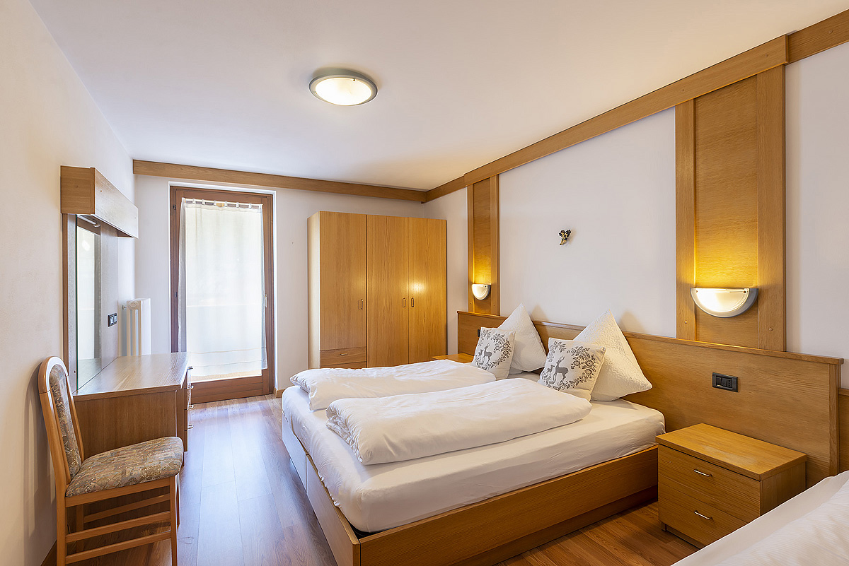 45 m² - 1 sypialnia z łóżkiem małżeńskim lub 2 łóżkami pojedynczymi i możliwością 1 dodatkowego łóżka jednoosobowego, pokój dzienny z aneksem kuchennym i rozkładaną kanapą dla 2 osób, przedpokój, łazienka, balkon