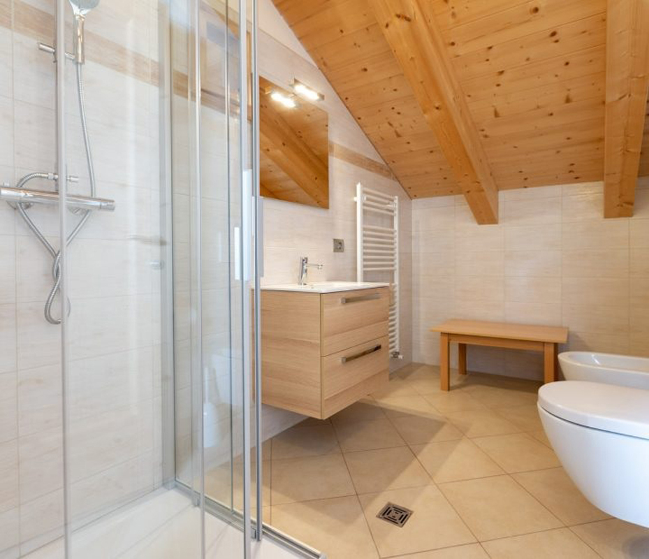 bilo 4+1 Superior - 65 m² - I piętro mieszkania, 1 sypialnia z łóżkiem małżeńskim, pokój dzienny z aneksem kuchennym i 1 łóżkiem pojedynczym (dla dziecka poniżej 12 roku życia), łazienka przeważnie z prysznicem, 2 balkony (jeden z widokiem na stoku narciarskiego i drugi z widokiem na miasto), na otwartej przestrzeni, rozkładana sofa dla 2 osób, łazieńka przeważnie z prysznicem