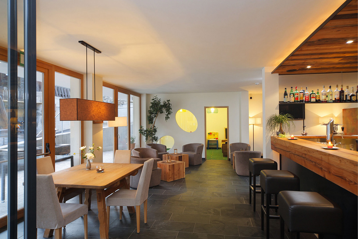 recepcja / lobby z Wi-Fi, restauracja wydzielona dla gości hotelowych, bar, pokój wspólny z TV, panoramiczny taras słoneczny z miejscami do siedzenia, ogród z placem zabaw, kącik dla dzieci, przechowalnia nart i butów narciarskich (ogrzewana suszarka do butów), przechowalnia bagażu, winda, parking wydzielony (ograniczona liczba miejsc, 1 miejsce / pokój), pralnia hotelowa, stacja ładowania samochodów elektrycznych, wi-fi