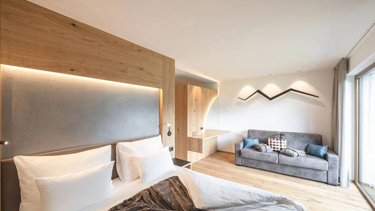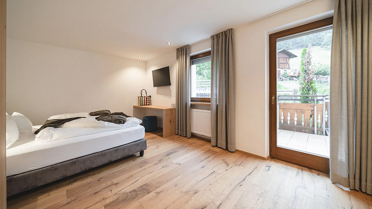 Suite Adrian / Juri 3/4/5 - 40 do 45 m² - pokój z łóżkiem małżeńskim, pokój z łóżkiem piętrowym, łazienka, balkon; 5. łóżko w formie rozkładanej kanapy dla 1 osoby w pokoju z łóżkiem małżeńskim lub w pokoju z łóżkiem piętrowym
