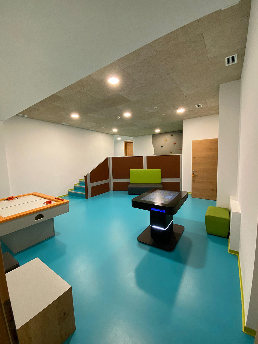 recepcja, restauracja, bar, sklep z winami, 2x pokój zabaw dla dzieci, taras słoneczny z miejscami do siedzenia, Wi-Fi, przechowalnia nart i butów narciarskich, winda (oprócz 1x Standard 1/2 oraz apartamentów Trilo 5 i Trilo 6), zarezerwowane miejsce parkingowe