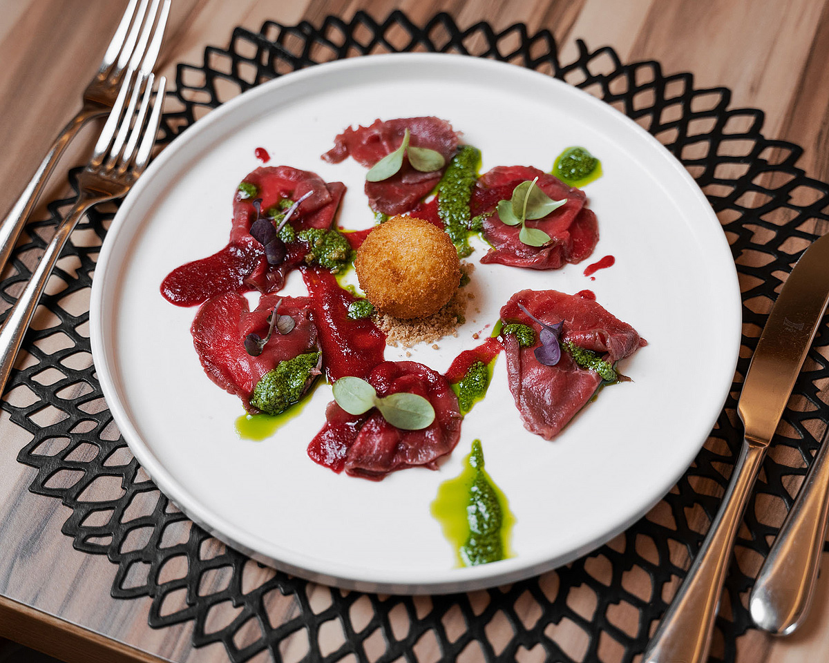 serwowane menu z wyborem 2 zup, 3 gorących przystawek i 3 dań głównych z dodatkiem, serwowany deser, bufet sałatkowy, napoje za opłatą; typowa lokalna kolacja raz w tygodniu