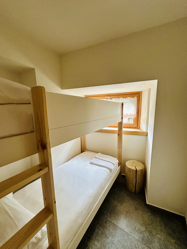 1 sypialnia z łóżkiem małżeńskim, 1 sypialnia z łóżkiem piętrowym, salon z aneksem kuchennym i rozkładaną sofą dla 2 osób, łazienka, balkon lub mały otwarty taras przy wejściu; maksymalna liczba osób w apartamencie to 4 osoby dorosłe i 2 dzieci poniżej 13 lat