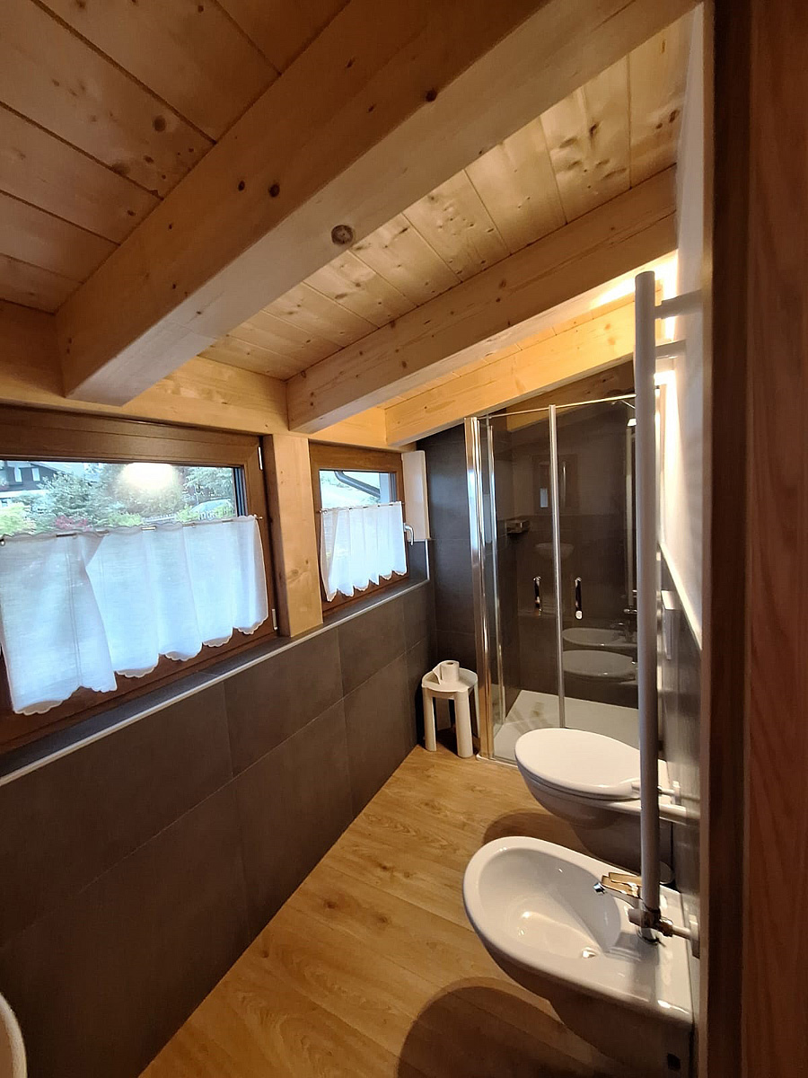Chalet składający się z 4 pokoi na dwóch piętrach, wspólnej jadalni z aneksem kuchennym i częścią wypoczynkową, każdy pokój ma własną łazienkę i balkon.
