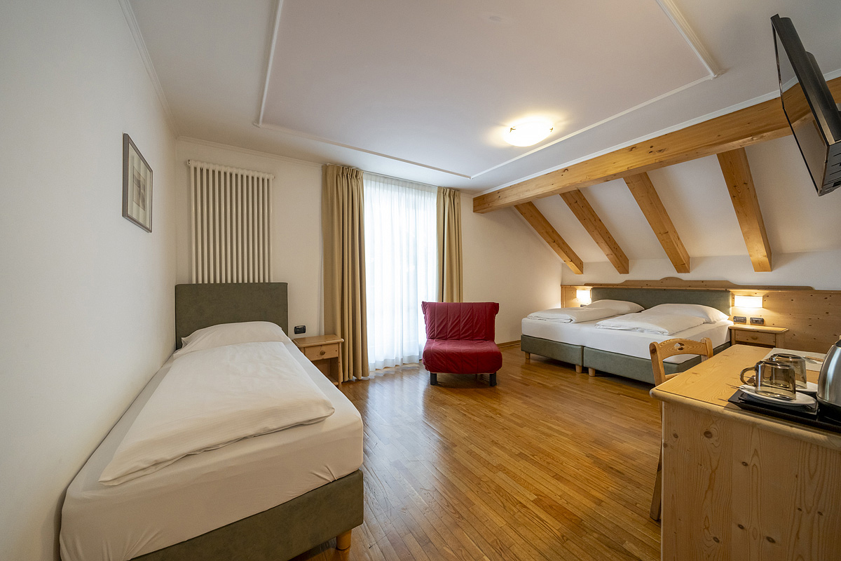 24 do 26 m² - pokój z łóżkiem małżeńskim z oddzielnymi łóżkami i 1 łóżkiem pojedynczym oraz ewentualnie rozkładaną sofą dla 1 lub 2 osób, łazienka z prysznicem lub wanną, zazwyczaj balkon