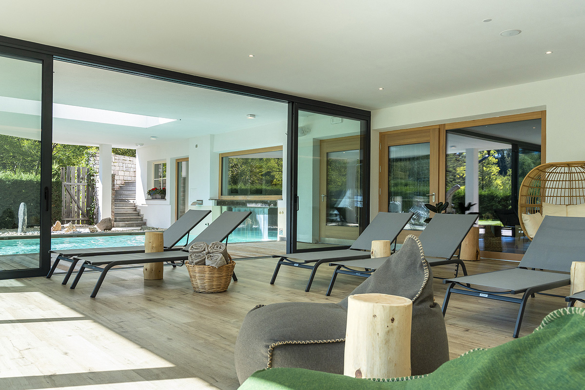 basen, basen odkryty, jacuzzi dla maks. 6 osób, jacuzzi zewnętrzne dla maks. 6 osób, biosauna#, sauna#, sauna parowa#, kabina na podczerwień#, mgła lodowa#, prysznic wielofunkcyjny#, kącik relaksacyjny z leżakami i łóżka wodne#, masaże*, usługi kosmetyczne*, siłownia, tenis stołowy, piłkarzyki; z usług oznaczonych # mogą korzystać dzieci od lat 16; bezpłatnie w centrum relaksu są również oferowane herbaty ziołowe, soki i owoce
