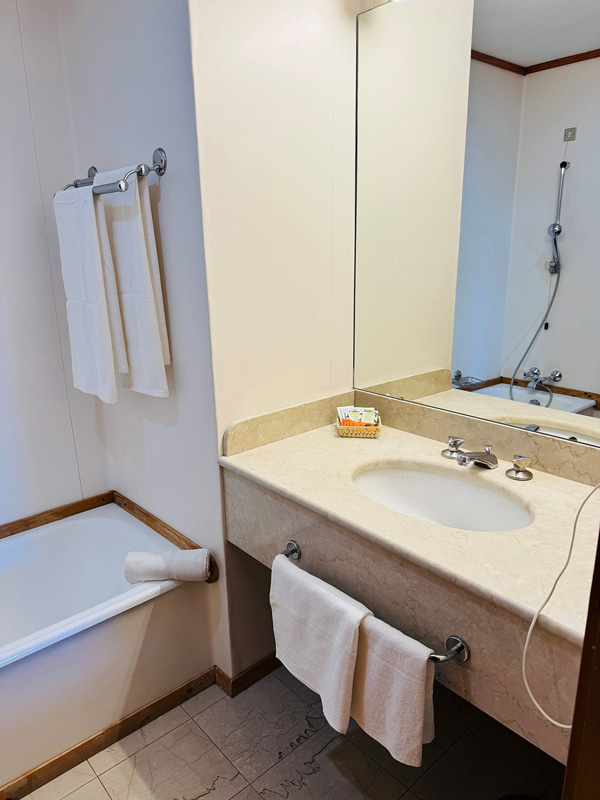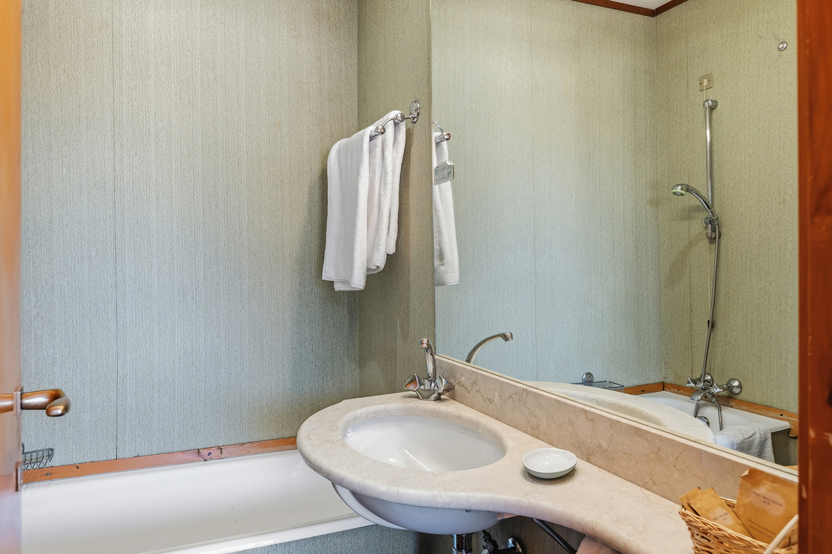 pokój z łóżkiem pojedynczym lub podwójnym i ewentualnie rozkładaną sofą, łazienka z prysznicem lub wanną, balkon (poza pokojami jednoosobowymi)