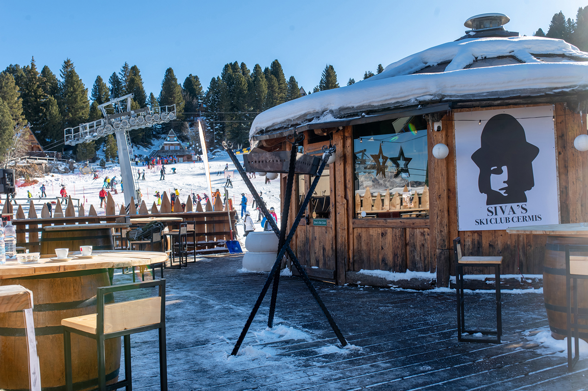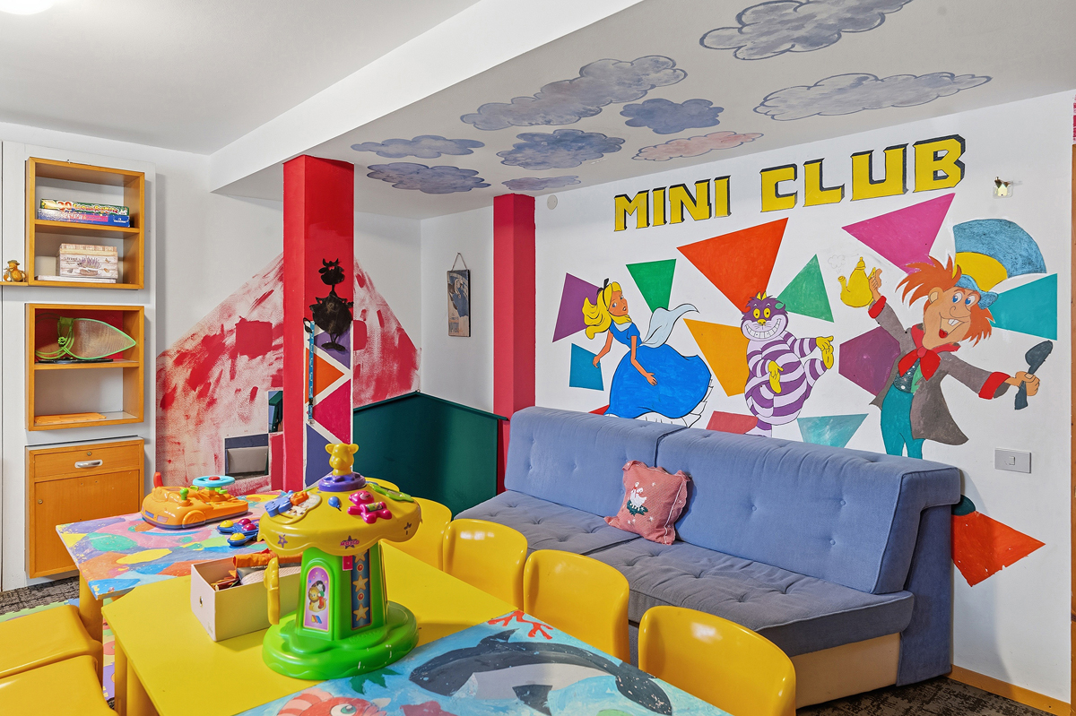 recepcja / mały hol z kominkiem / bar, restauracja / samoobsługowa pizzeria na stoku tylko na lunch, restauracja, bar apres ski na świeżym powietrzu przy stoku z tarasem słonecznym i leżakami, salon z telewizją satelitarną, mały taras słoneczny z leżakami, kącik dla dzieci, sejf hotelowy, przechowalnia nart i butów narciarskich, wypożyczalnia i serwis sprzętu narciarskiego