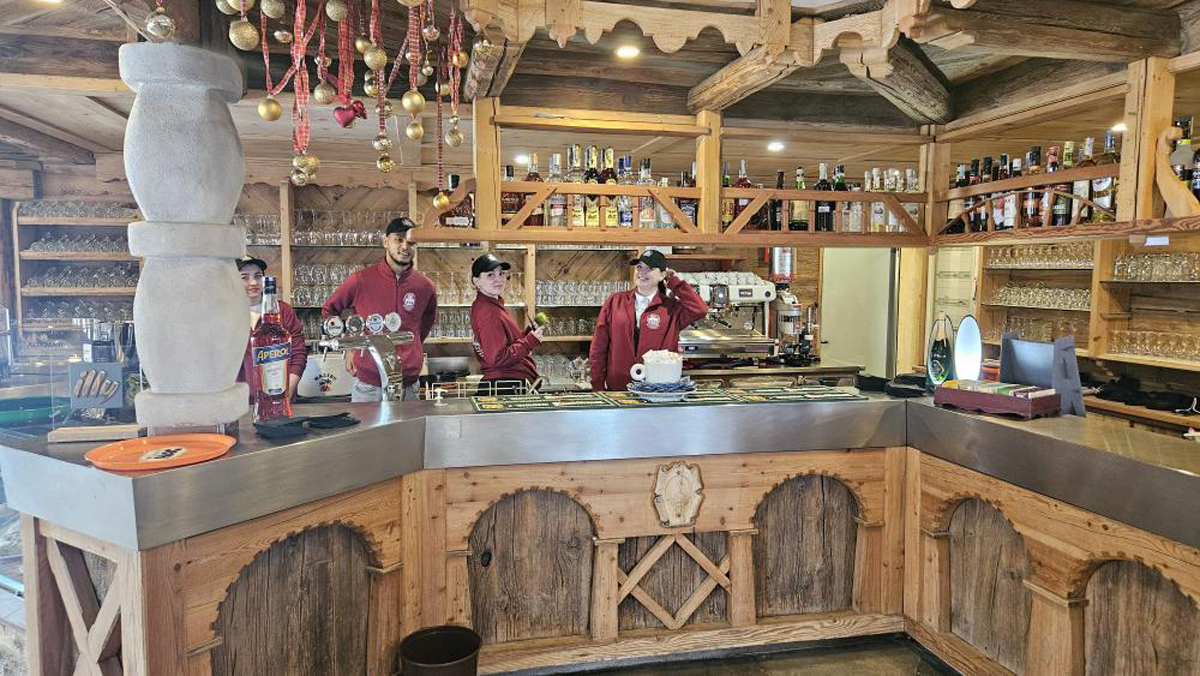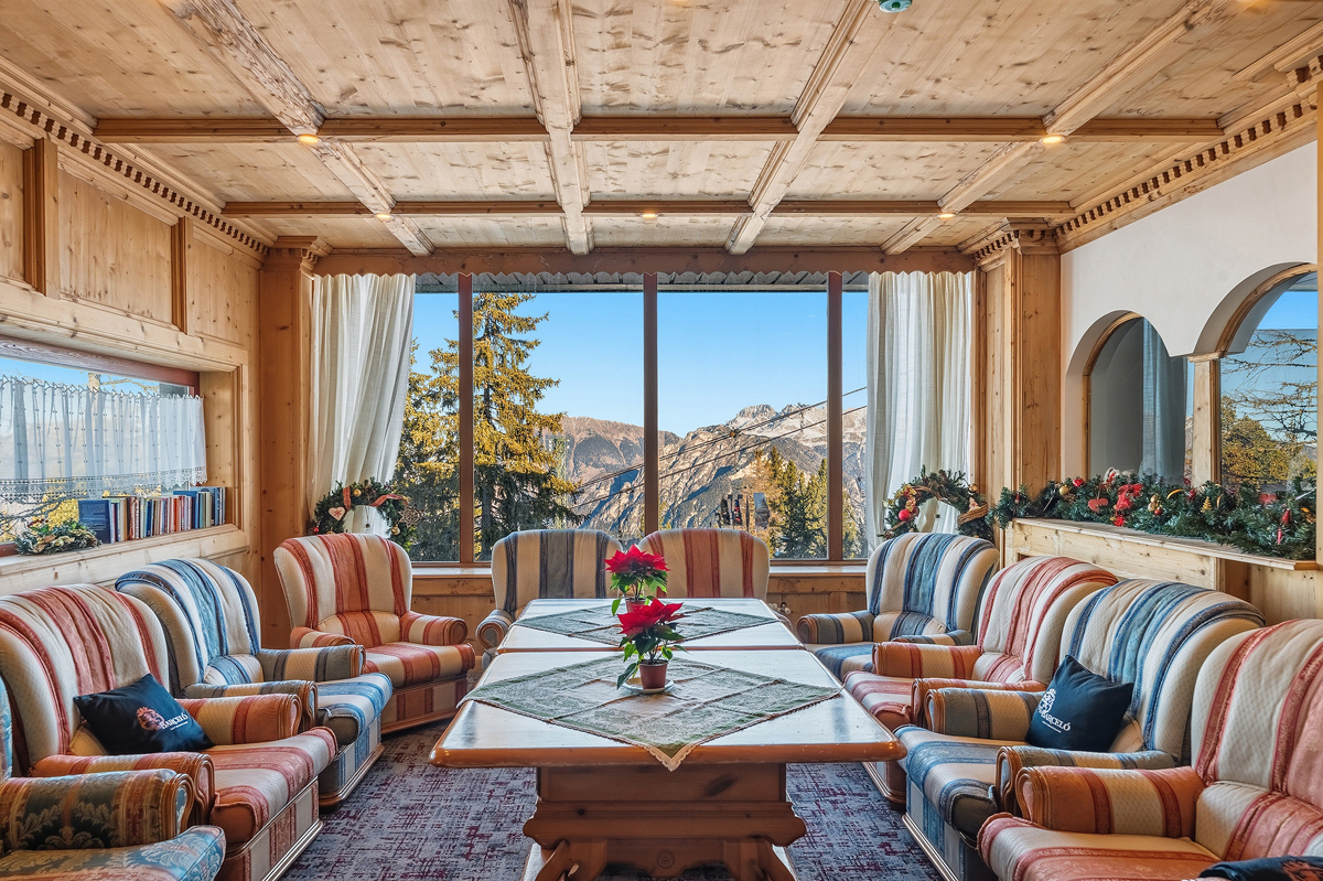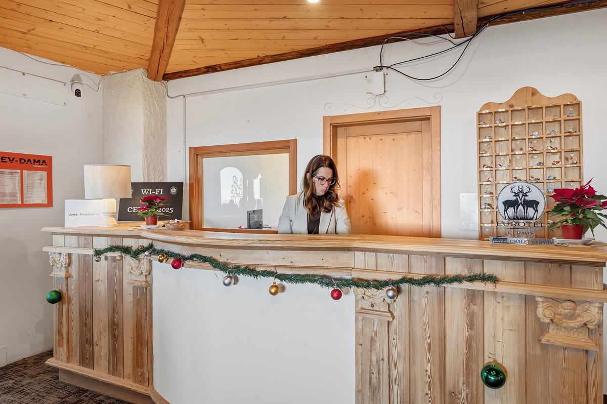 recepcja / mały hol z kominkiem / bar, restauracja / samoobsługowa pizzeria na stoku tylko na lunch, restauracja, bar après ski na świeżym powietrzu przy stoku z tarasem słonecznym i leżakami, salon z telewizją satelitarną, mały taras słoneczny z leżakami, kącik dla dzieci, sejf hotelowy, przechowalnia nart i butów narciarskich, wypożyczalnia i serwis sprzętu narciarskiego