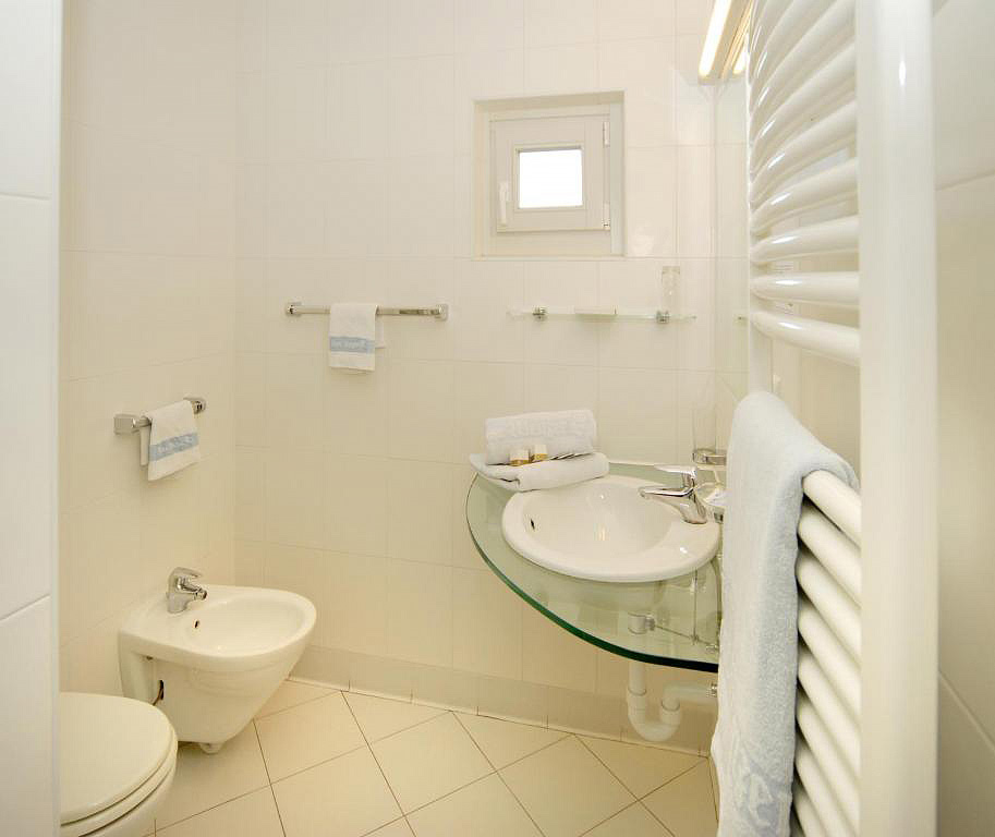 pokój z 1 lub 2 łóżkami pojedynczymi lub łóżkiem małżeńskim i ewentualnie rozkładaną sofą dla 1 lub 2 osób, łazienka, balkon