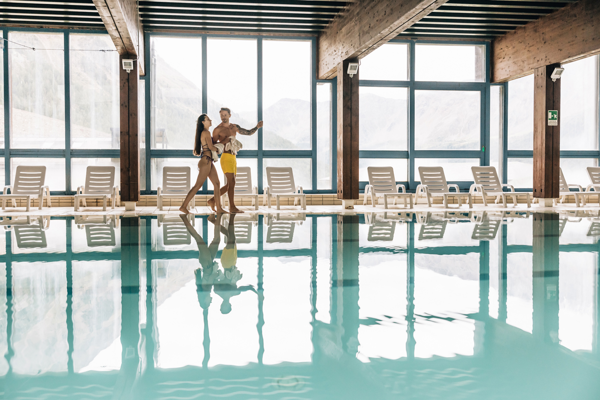 oferta Blu Hotel Senales Zirm - Cristal - basen 25 x 10 m z leżakami, jacuzzi#*, sauna#*, łaźnia parowa#*, kącik relaksacyjny#* z leżakami, ścieżka Kneippa#*, masaże#*, siłownia#; usługi oznaczone # dostępne tylko dla osób powyżej 16 roku życia; nowa zewnętrzna panoramiczna sauna fińska na tarasie Aparthotel Maso Corto* (na życzenie)