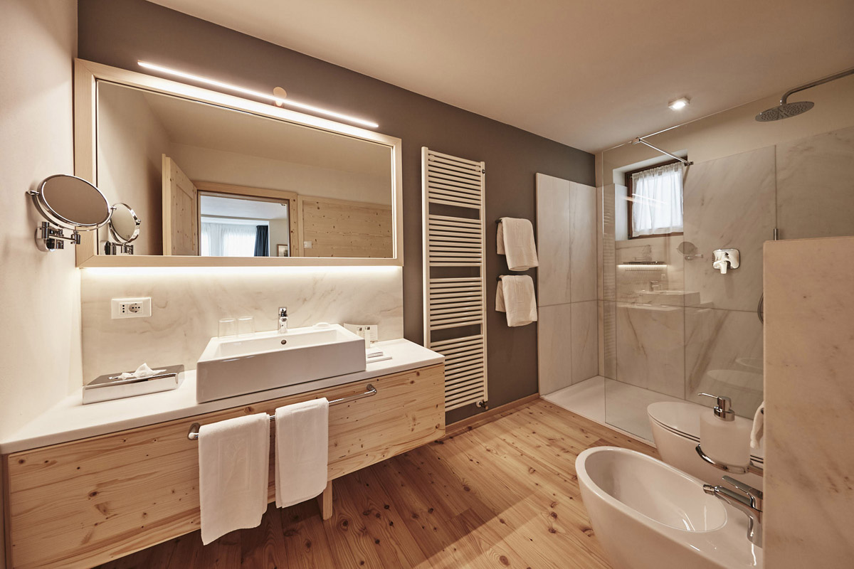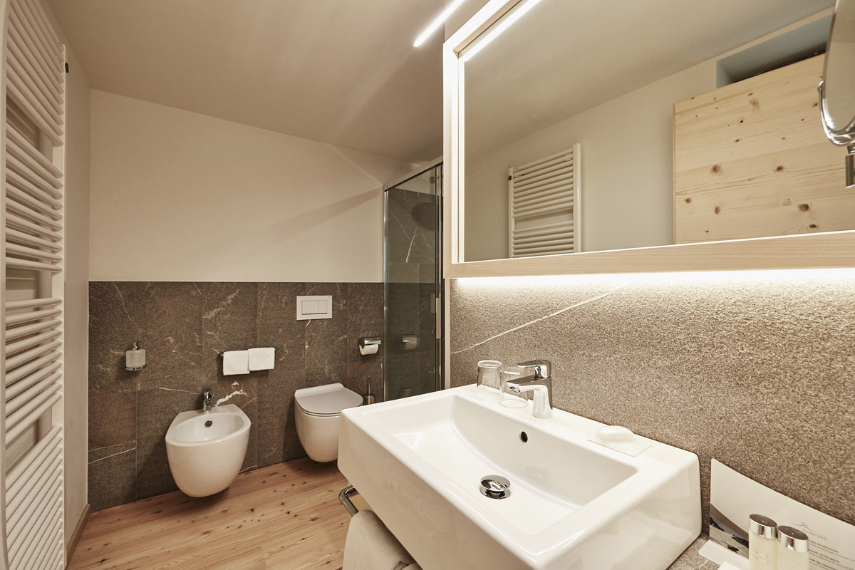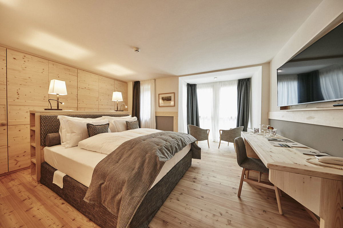 Telewizja satelitarna, telefon, suszarka do włosów, sejf, łącze internetowe Wi-Fi, minibar, jabłka z regionu Val Venosta, termofor, biurko, szlafroki i kapcie do strefy wellness, kosmetyki Glacisse